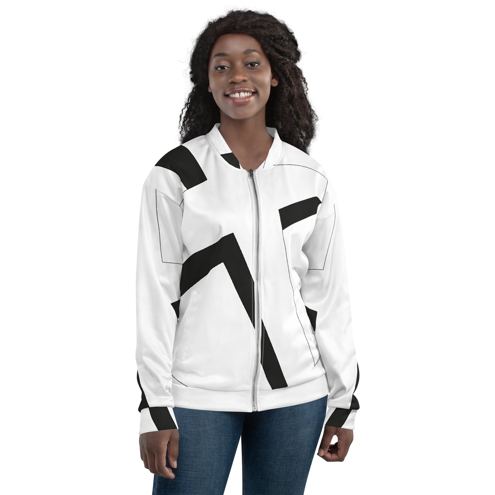 Unisex Bomber Jacket | All-over print | Focall - Cross - White Black